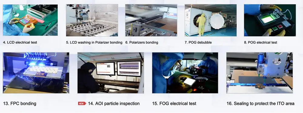 ● Atualizar equipamentos de fabricação de precisão: adotar sistemas de limpeza de substrato de alta precisão (como tecnologia de limpeza de plasma) para reduzir a taxa de resíduos de impurezas, introduzir equipamento automático de alinhamento de filtro de cores para controlar a precisão do alinhamento dentro de ±0,5μm; otimizar o processo de injeção de cristal líquido para reduzir a geração de bolhas.