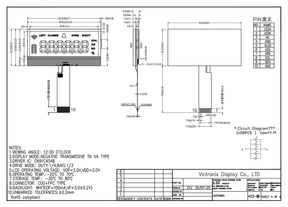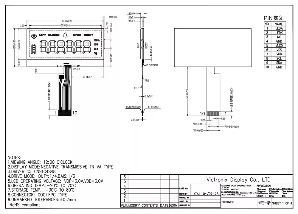 Este módulo LCD do segmento VX50472 VA é altamente considerado nos mercados japoneses, o que torna nossos produtos diferentes de outros fabricantes? A princípio, possui uma tela transmissiva negativa com uma direção ideal de visualização de 12 horas e um sistema de luz de fundo de LED branco (VF = 3,0V, se = 60mA). Em segundo lugar, foi validado por meio de 96h de operação de alta temperatura (70 ° C)/baixa temperatura (-20 ° C), resistência a 90%de umidade do RH e teste de vibração de 10 a 55Hz para operar de maneira confiável de -20 ° C a +70 ° C. Além disso, ele usa o conector CN91C4S48 Driver IC e Cog+FPC Type. Além disso, sua área de exibição é de 60 × 24 mm e a dimensão de contorno é 64 × 2,8 × 32 mm (excl. FPC).